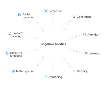 The DeepMind team, led by Ryan Burnell and including luminaries like Shane Legg (who was one of the individuals who co-coined the term “AGI”) and Meredith Ringel Morris, drew from decades of research in psychology, neuroscience, and cognitive science to identify the building blocks of intelligence. Eight are foundational faculties — perception, generation, attention, learning, memory, reasoning, metacognition, and executive functions. Two are “composite” faculties that require orchestrating the others — problem solving and social cognition.