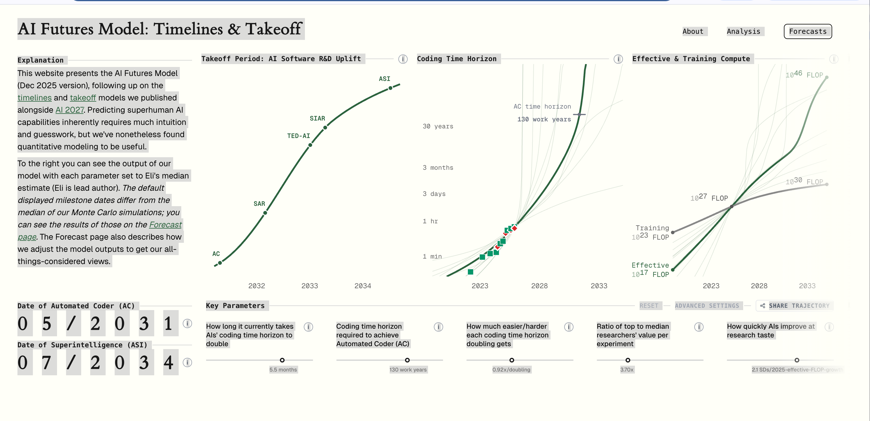 Automated Coder (AC): May 2031 AI systems will be capable of fully automating most software development tasks, including those developed by AGIs. The model’s median estimate shows this happening in just over six years - when today’s sixth graders are graduating high school.